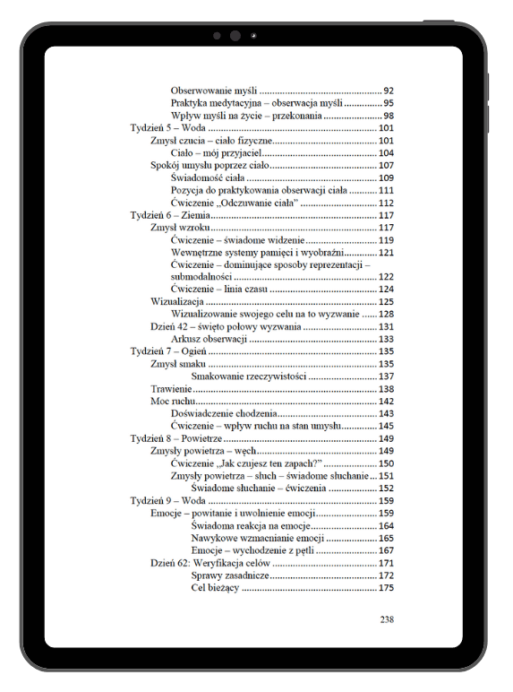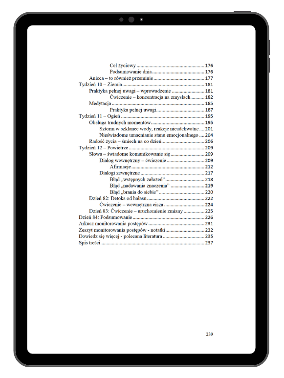 Ten e-book zawiera treść podzieloną na 12 tygodni, dzięki czemu wchodzisz w proces i pracujesz w nim systematycznie.